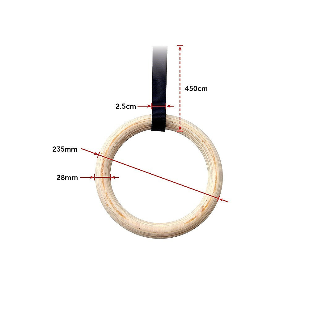 Train your strength, flexibility, and agility on these Olympic gymnastic rings. Whether you train for fitness or competition, these 28-millimetre wooden rings from Randy & Travis Machinery will ready you to surpass your goals.